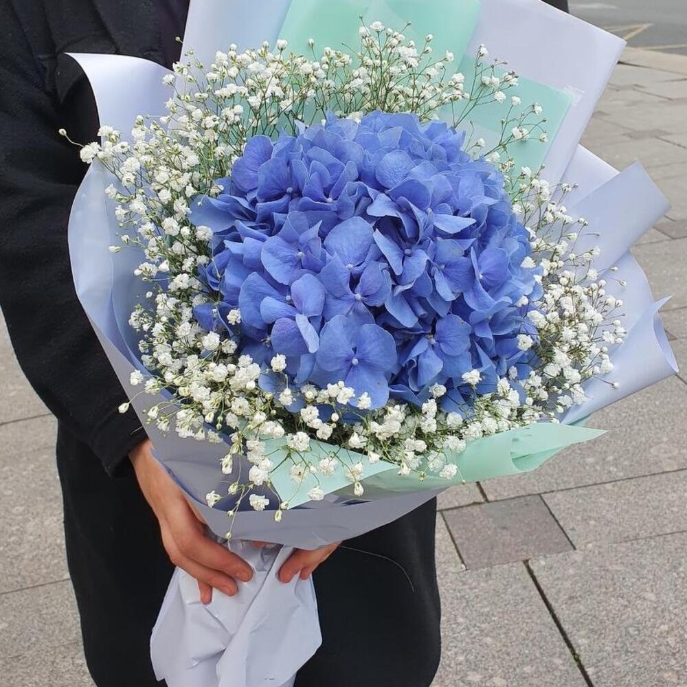 Букет синей гортензии и гипсофилы