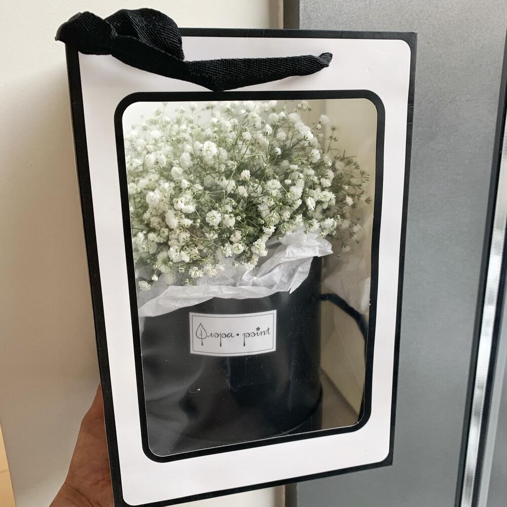 Гипсофила – 8 шт.Коробка шляпная – 1 шт.Оазис – 1 шт.