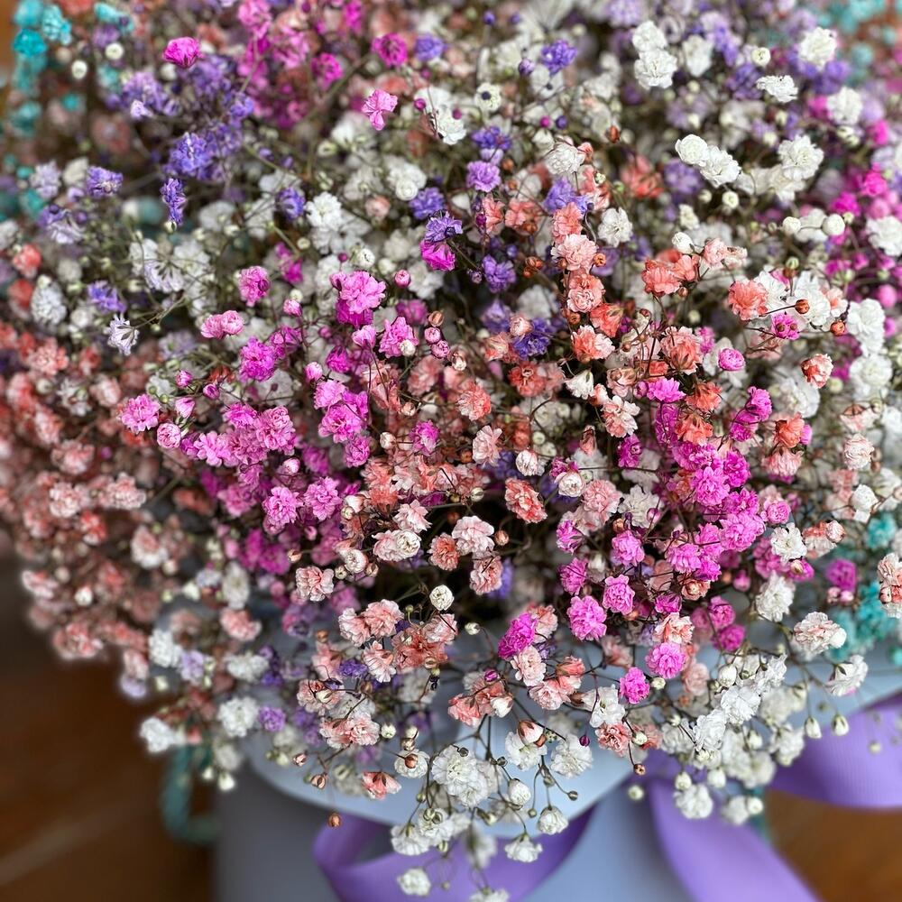 Нежная композиция из радужной голландской гипсофилы в коробочке порадует ваших близких по поводу и без