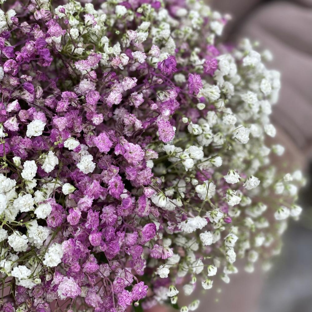 “Сиреневый туман” – композиция из гипсофилы в шляпной коробке