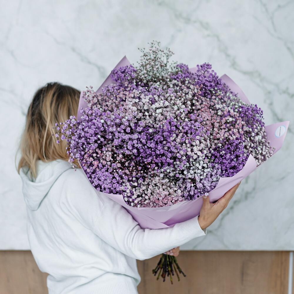 Шикарный букет из воздушной гипсофилы. Получатель точно не останется равнодушным при виде такого гиганта .Инструкция по уходу за цветами прикреплена к каждому заказу.Цветы гипсофилы отличаются стойкостью и даже при высыхании не теряют, декоративности и цвета. Что позволяет, долгое время украшать интерьер в качестве сухоцветов.Подпишем открытку с вашими пожеланиями бесплатно