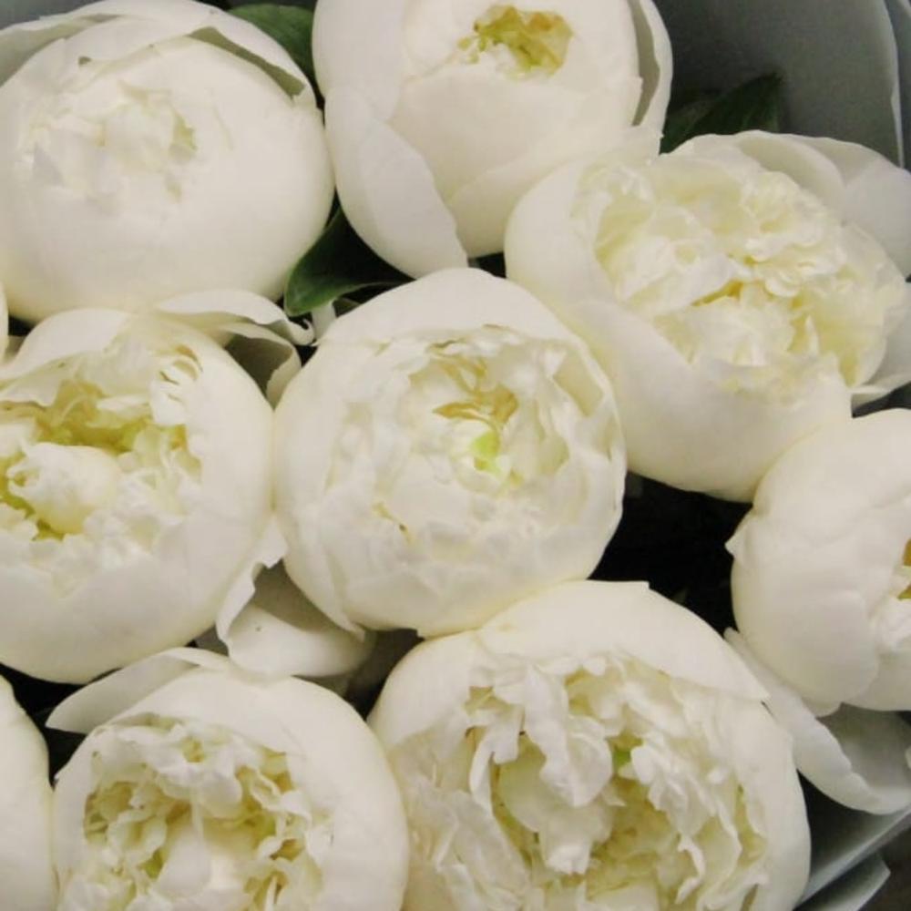 Белоснежный букет из одиннадцати пионов в лаконичной упаковке.
