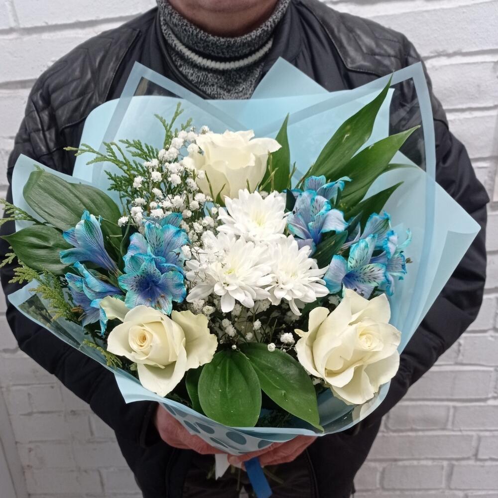 Альстромерия – 2 шт.Хризантема кустовая – 1 шт.Роза – 3 шт.
