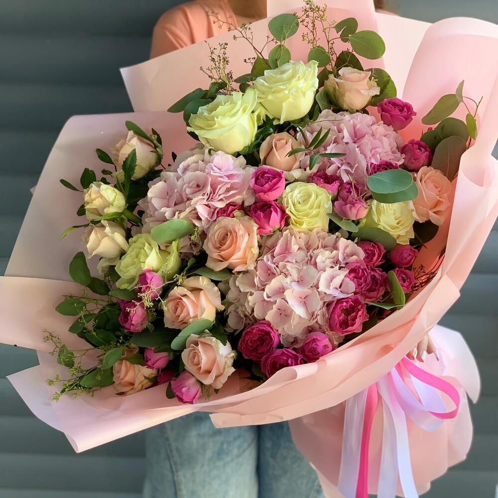 Кустовые розы, Лизиантусы, Пионы, Розы, Хризантемы