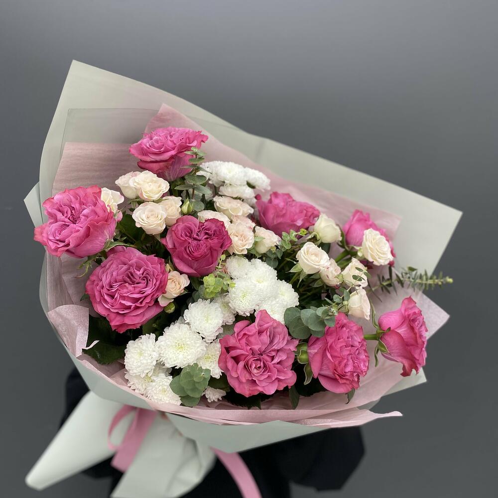 Гвоздики, Кустовые розы, Лизиантусы, Пионовидные розы, Розы