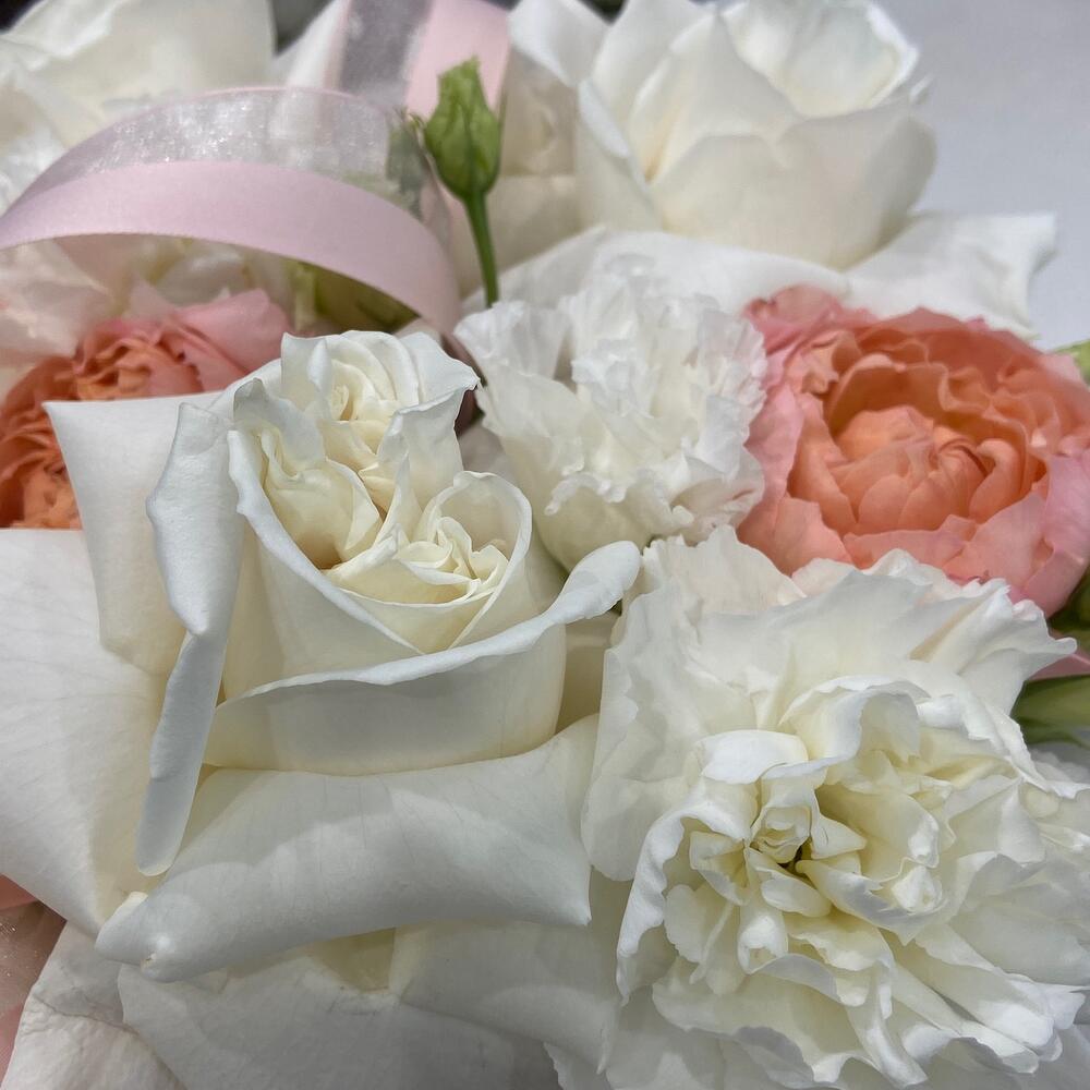 Гвоздики, Лизиантусы, Розы, Тюльпаны