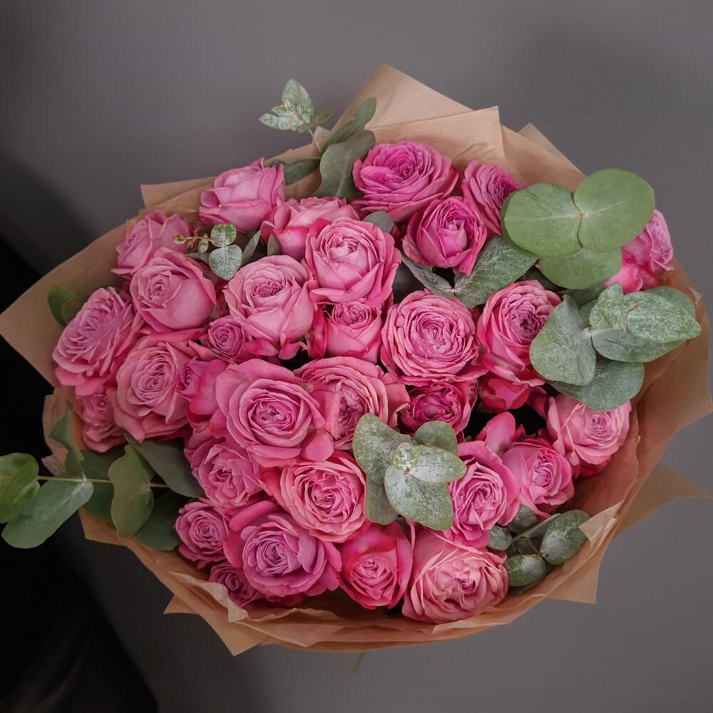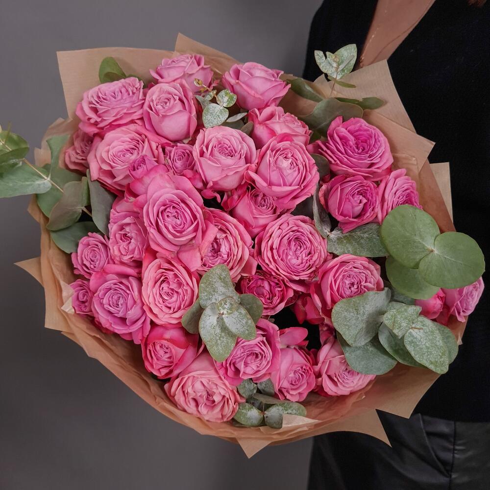 Кустовые розы Артезия с эвкалиптом