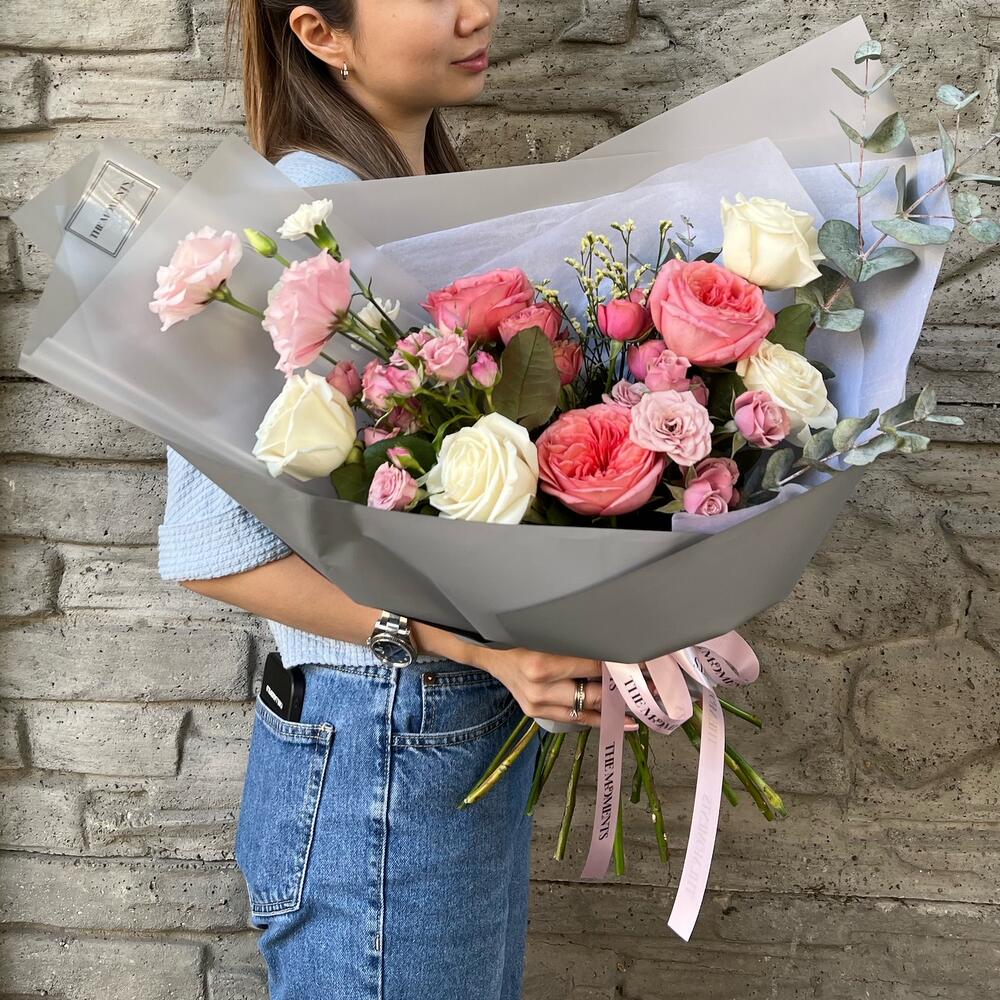 Гвоздики, Кустовые розы, Пионовидные розы, Розы
