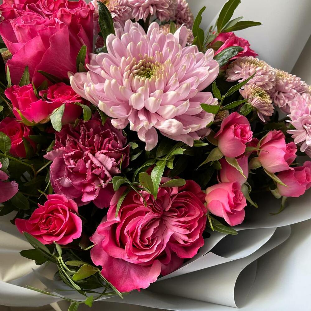 Категорий: Гвоздики, Кустовые розы, Пионовидные розы, Розы, Хризантемы