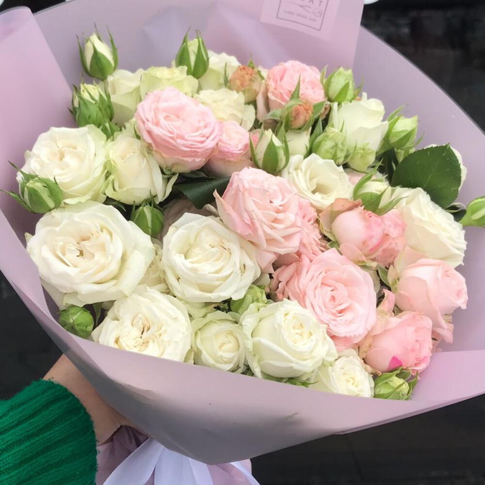 Альстромерии, Кустовые розы, Лизиантусы, Пионовидные розы, Розы, Ромашки