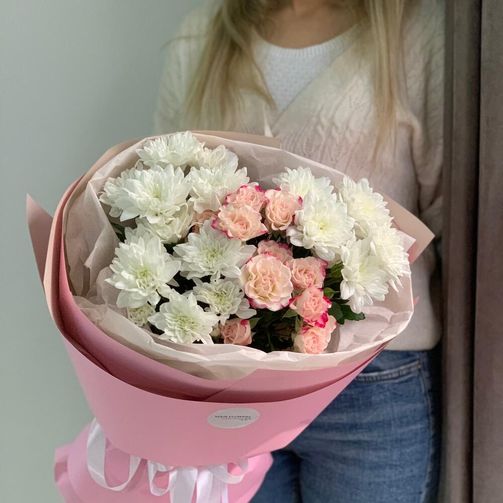 Гвоздики, Кустовые розы, Лизиантусы, Пионовидные розы, Розы